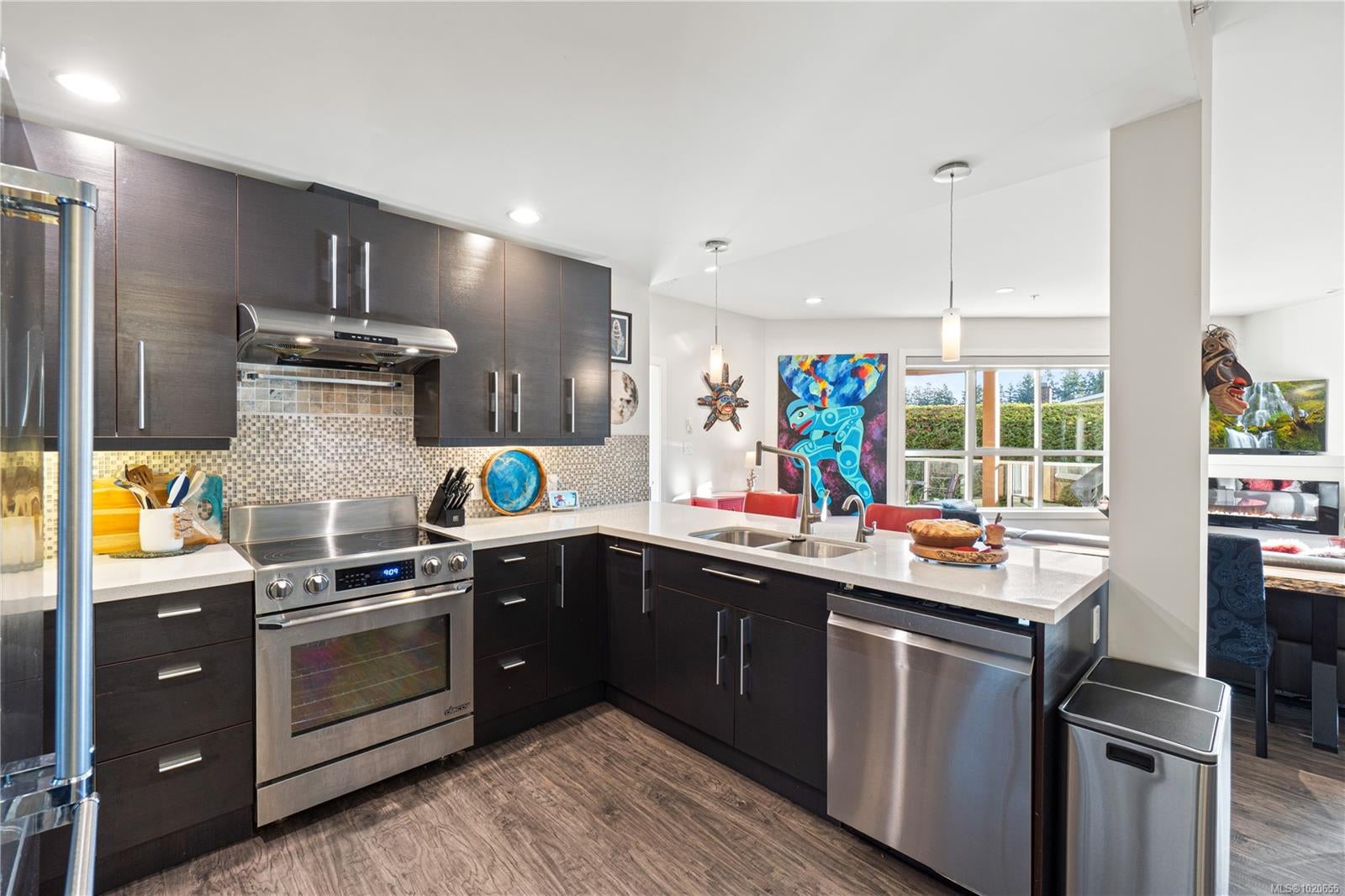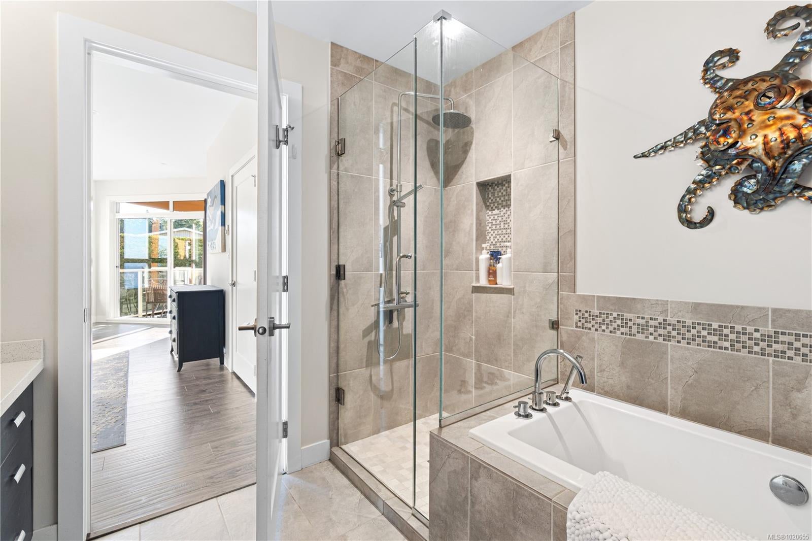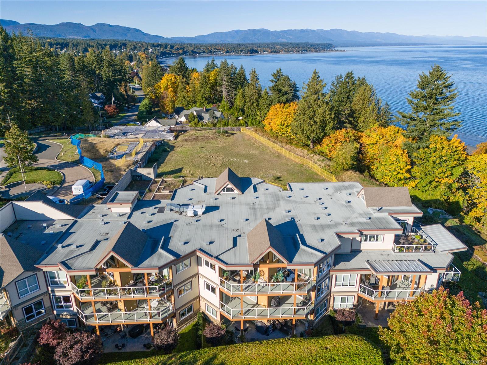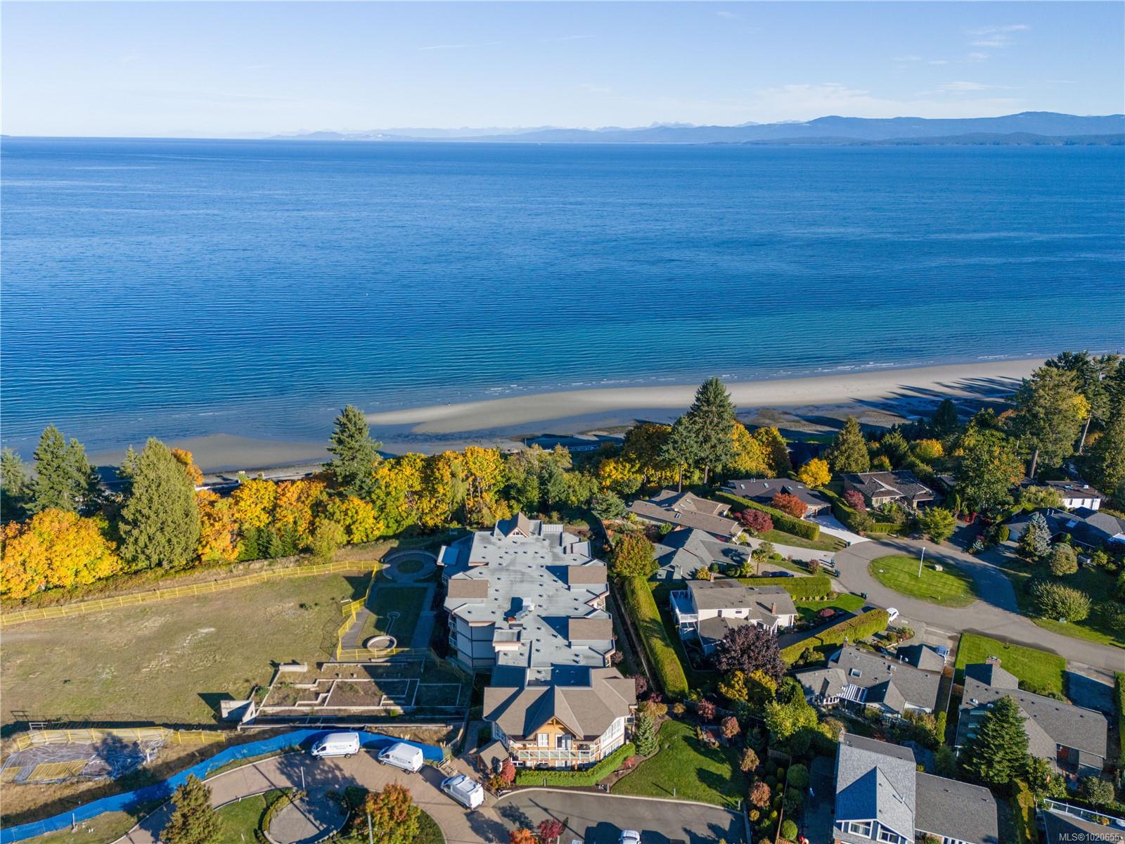 Embrace the ultimate Qualicum Beach lifestyle in this luxurious, meticulously appointed 2-bedroom, 2-bathroom ocean view ground level condo. The location is unparalleled: private stairs adjacent to the complex mean you are truly steps from the sand and surf of Qualicum Beach. Step inside to a spacious, open-concept design bathed in natural light from expansive, floor-to-ceiling windows frame your spectacular ocean views, creating an inviting space to relax. The gourmet kitchen is a chef's delight, featuring sleek quartz countertops & stainless steel appliances. The primary bedroom offers tranquility, a walk-in closet, and direct access to the wrap-around entertainment deck with stunning ocean views—your private perch for morning coffee or evening sunsets. Indulge in the luxury spa-inspired ensuite with a separate shower & deep soaker tub. A spacious second bedroom and another full bath complete this elegant floorplan. Enjoy a maintenance-free, "lock-and-go" lifestyle in this pristine, pet-friendly strata with no age restrictions. The unit includes two underground stalls (EV-ready) and a storage locker. You're centrally located, with Judge's Row Beach, the golf course, Heritage Forest and the charming village just moments away.