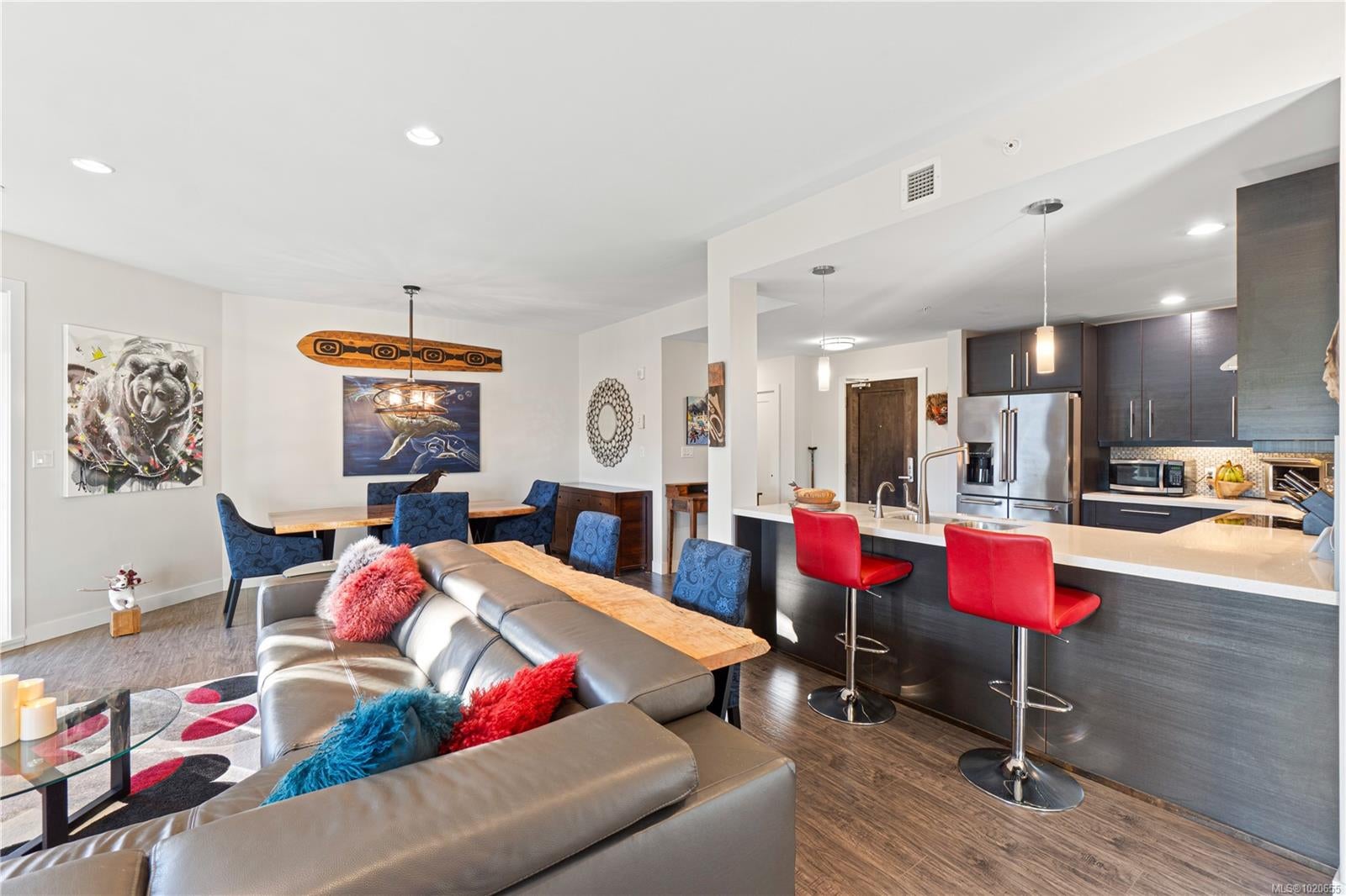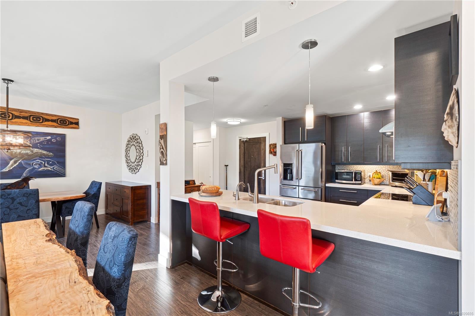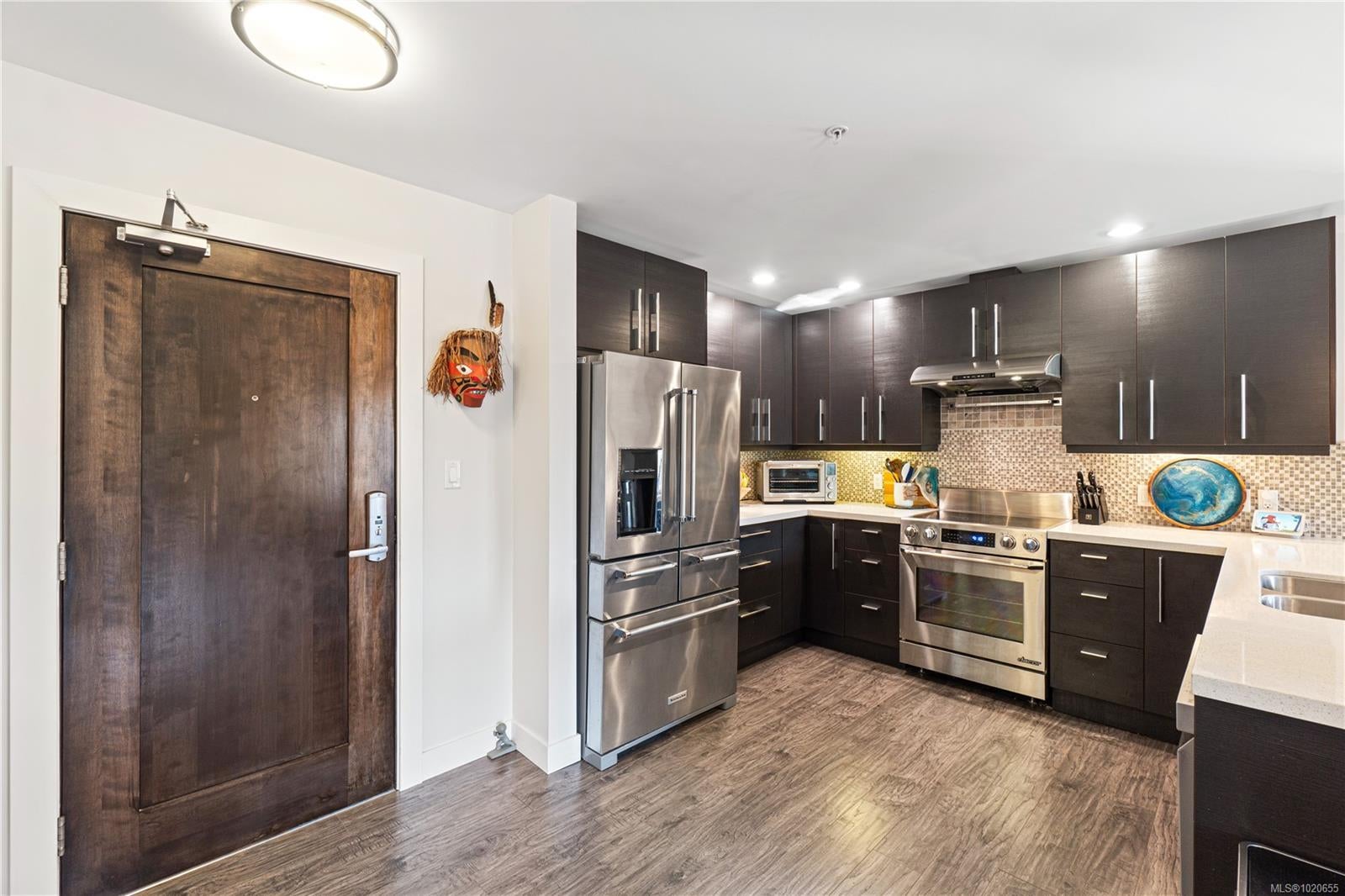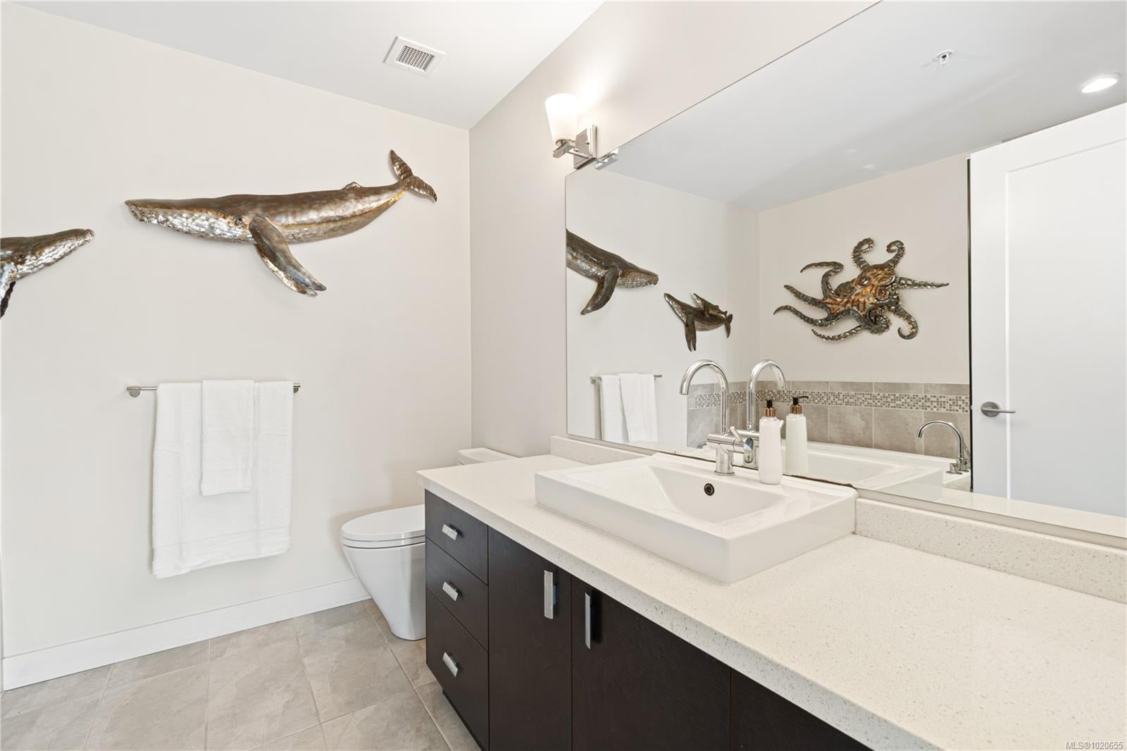 Embrace the ultimate Qualicum Beach lifestyle in this luxurious, meticulously appointed 2-bedroom, 2-bathroom ocean view ground level condo. The location is unparalleled: private stairs adjacent to the complex mean you are truly steps from the sand and surf of Qualicum Beach. Step inside to a spacious, open-concept design bathed in natural light from expansive, floor-to-ceiling windows frame your spectacular ocean views, creating an inviting space to relax. The gourmet kitchen is a chef's delight, featuring sleek quartz countertops & stainless steel appliances. The primary bedroom offers tranquility, a walk-in closet, and direct access to the wrap-around entertainment deck with stunning ocean views—your private perch for morning coffee or evening sunsets. Indulge in the luxury spa-inspired ensuite with a separate shower & deep soaker tub. A spacious second bedroom and another full bath complete this elegant floorplan. Enjoy a maintenance-free, "lock-and-go" lifestyle in this pristine, pet-friendly strata with no age restrictions. The unit includes two underground stalls (EV-ready) and a storage locker. You're centrally located, with Judge's Row Beach, the golf course, Heritage Forest and the charming village just moments away.