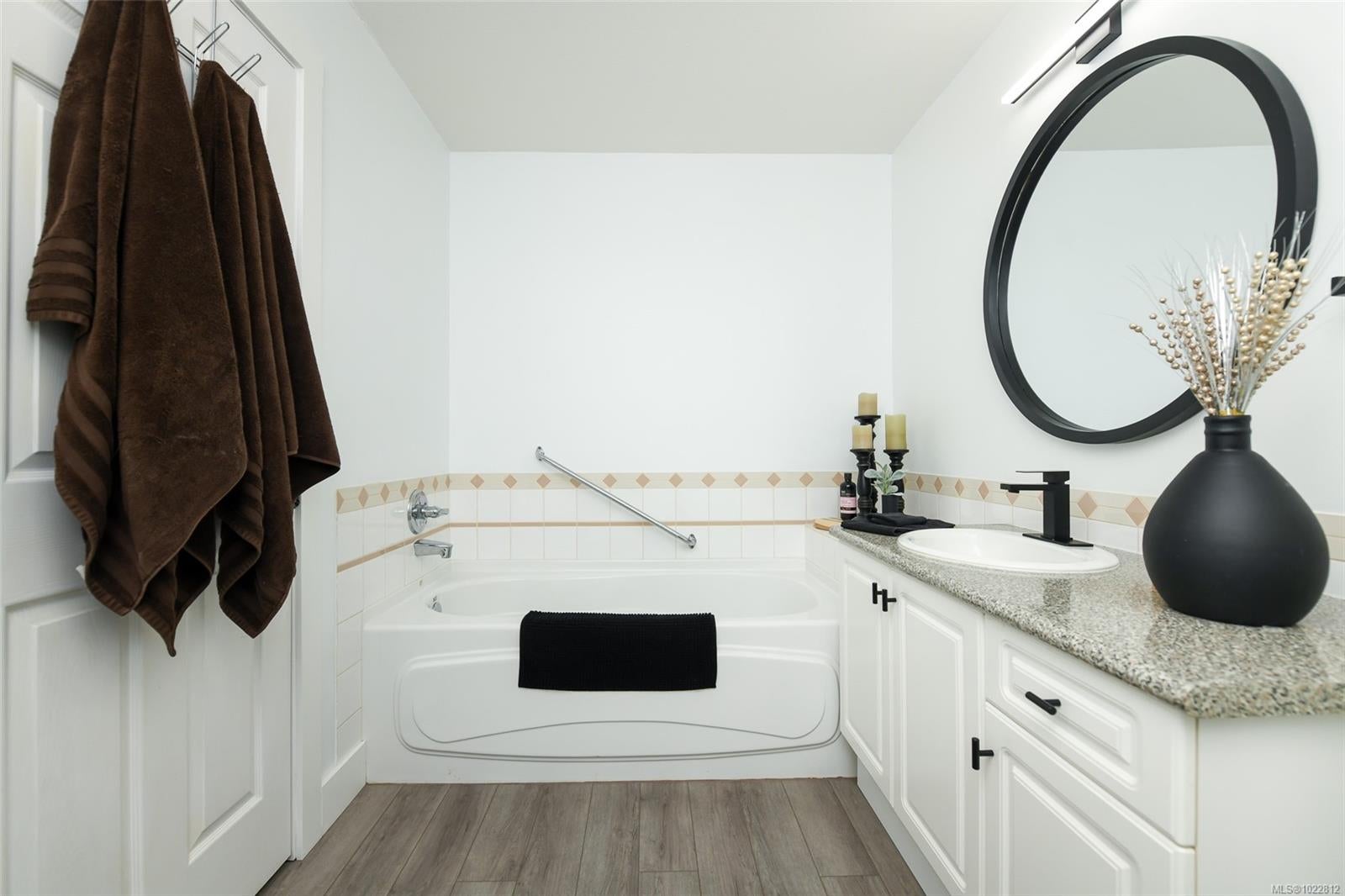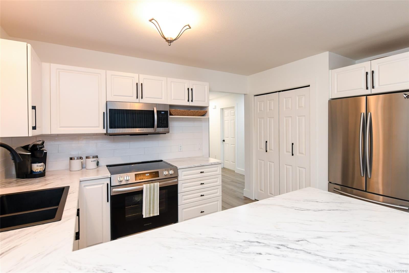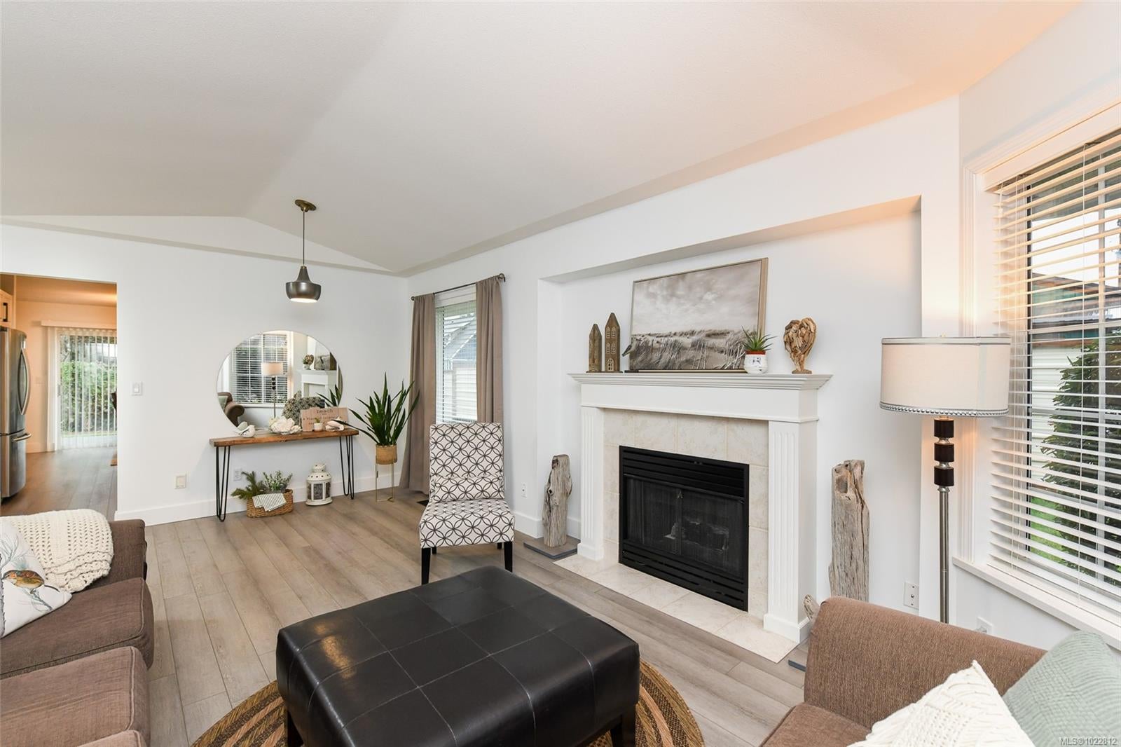 Modern elegance meets quiet comfort in this beautifully updated 2-bedroom, 2-bathroom end-unit patio home. Freshly transformed with new flooring throughout, crisp paint, and updated baseboards, this residence feels like a brand-new home. The bright, functional kitchen features sleek new countertops and overlooks a serene, private green space. The open-concept layout is bathed in natural light, anchored by a cozy gas fireplace. Retreat to the primary suite, complete with a spacious 3-piece ensuite. As a desirable end unit, you’ll enjoy a larger property feel and peaceful views of the yard Located in a premier 55+ community, you are just steps from shopping and amenities. This well-run strata offers low fees, a single-car garage, and additional parking and allows one cat or dog under 25lb. This meticulously kept home is the perfect turnkey opportunity. Move in and enjoy! Call David Pyle today for more info or to book a private tour, 250-937-1132